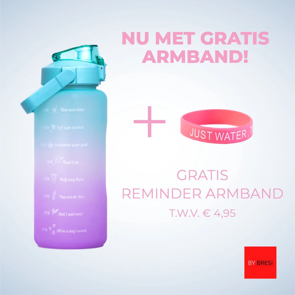 Bestel nu deze motiverende 2 liter fles en krijg er gratis ons ‘reminder’ armbandje t.w.v. 4,99 bij!