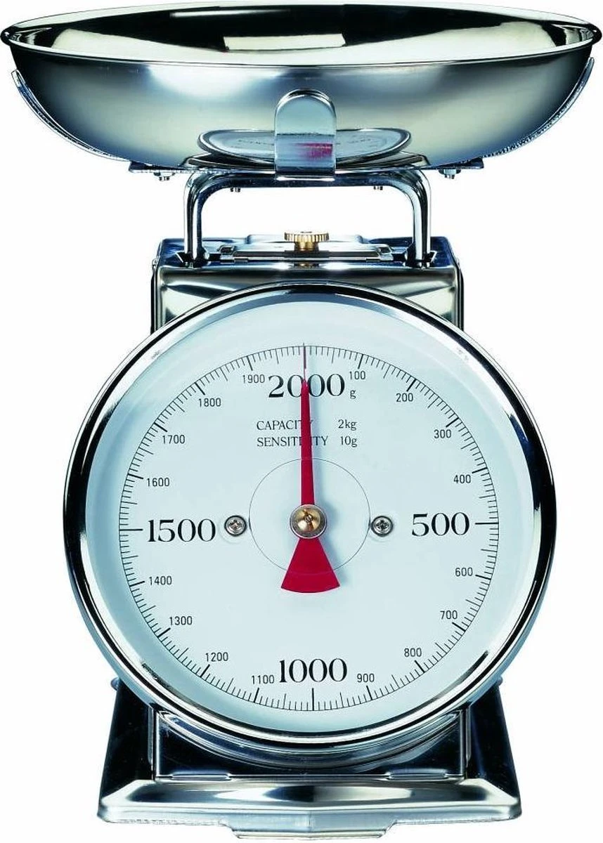 De weegschaal is voorzien van glanzend RVS 18/10 retro look en kan wegen tot maximaal 2 kg. De kom heeft een doorsnede van 20 cm en is afneembaar. Voor deze analoge weegschaal zijn geen batterijen nodig. Gemakkelijk leesbaar dankzij precieze eenvoudige aanduiding. Het weegmechanisme is niet beïnvloedbaar door temperatuur en laat u nooit in de steek.