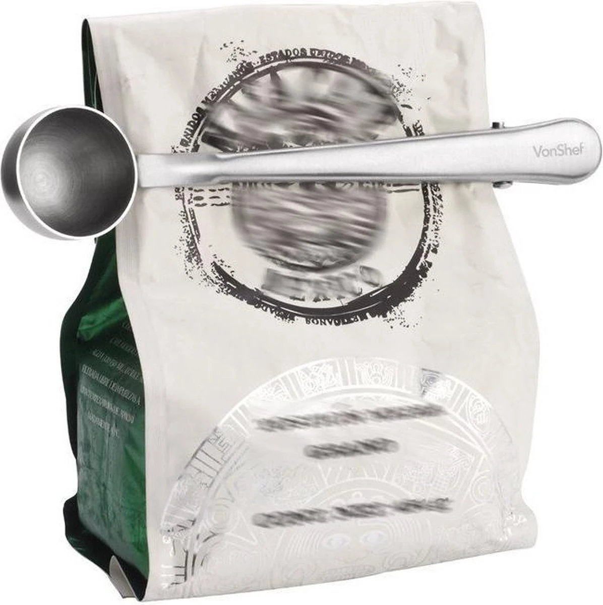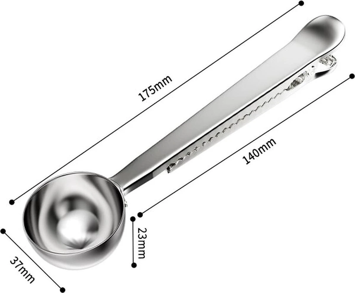 Dit koffieschepje heeft een dubbele functie, je kunt er koffie mee scheppen en daarna ook nog de zak dicht houden. Ideaal in gebruik!