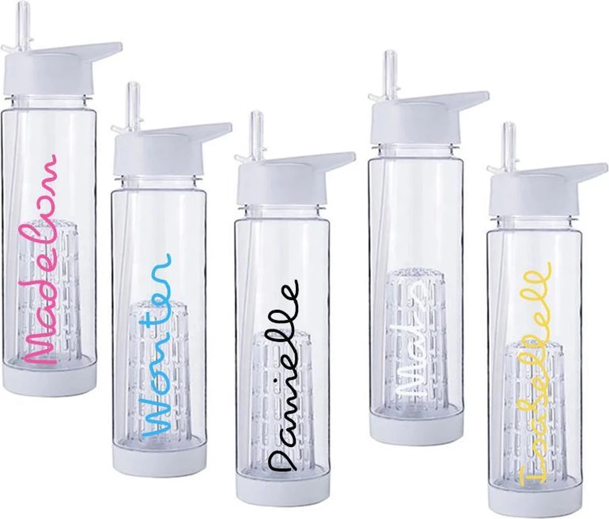Waterfles fruit infuser met je eigen naam, bedrijfsnaam of nickname! Hoe leuk is dat.