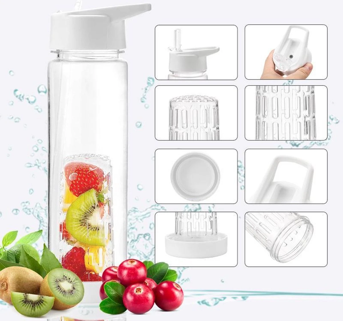 Je vult heel eenvoudig de uitneembare filter met fruit of groenten. Wil je het lekker fris houden kan je er ook ijsblokjes bij doen. Vervolgens vul je de fles met water en laat de smaken even een paar minuten intrekken. En Voila! Je hebt heerlijk vers water met je eigen favoriete smaak.