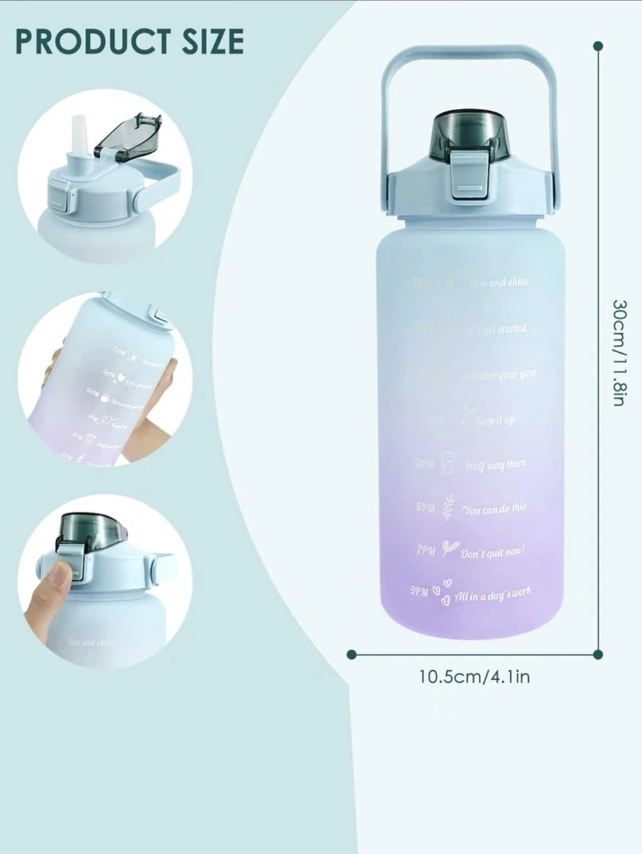 Een handige XXL 2 liter waterfles met motivatie teksten erop. Deze motivatie teksten zullen jou helpen om je doel van twee liter water op een dag te drinken en blijf je gemotiveerd om voldoende vocht te nuttigen. Door voldoende water drinken blijf je gehydrateerd en dat werkt op een positieve manier op jouw hele lichaam. Je haar groeit beter, je huid wordt mooier en de afvalstoffen in je lichaam kunnen beter je lichaam verlaten en hierdoor zal je sneller afvallen!!!