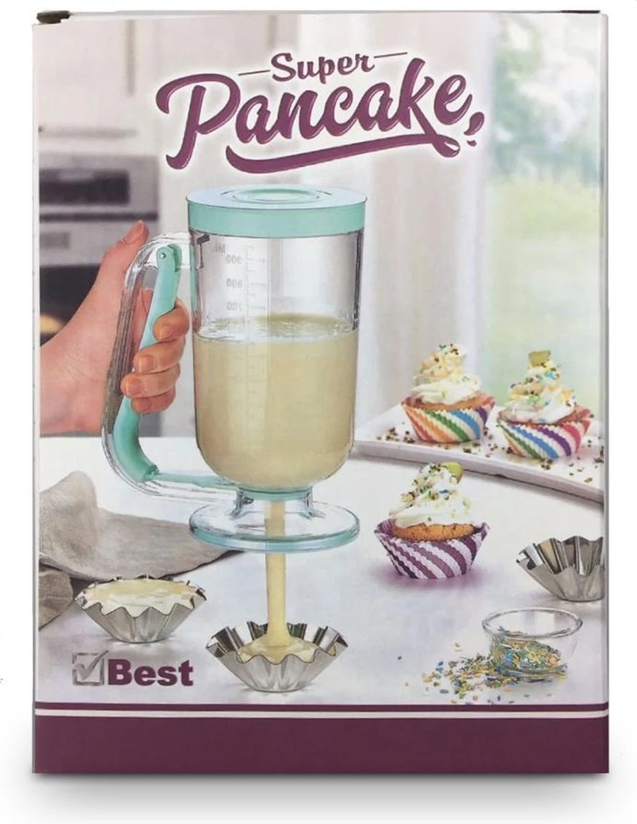 De Batter Dispenser is een uiterst handige Beslag Beker voor het maken van pannenkoeken beslag. Of zonder geknoei cupcakes, muffins of andere lekkernijen maken. De inhoud van de Beslag Beker is 900 ml. Door de brede opening is beslag eenvoudig in de Beslag Beker te gieten en is de beker ook makkelijk schoon te maken. Door middel van de hendel, kun je precies de hoeveelheid gieten die nodig is. De Beslag Beker kun je met één hand bedienen en je hebt altijd de perfecte hoeveelheid beslag!