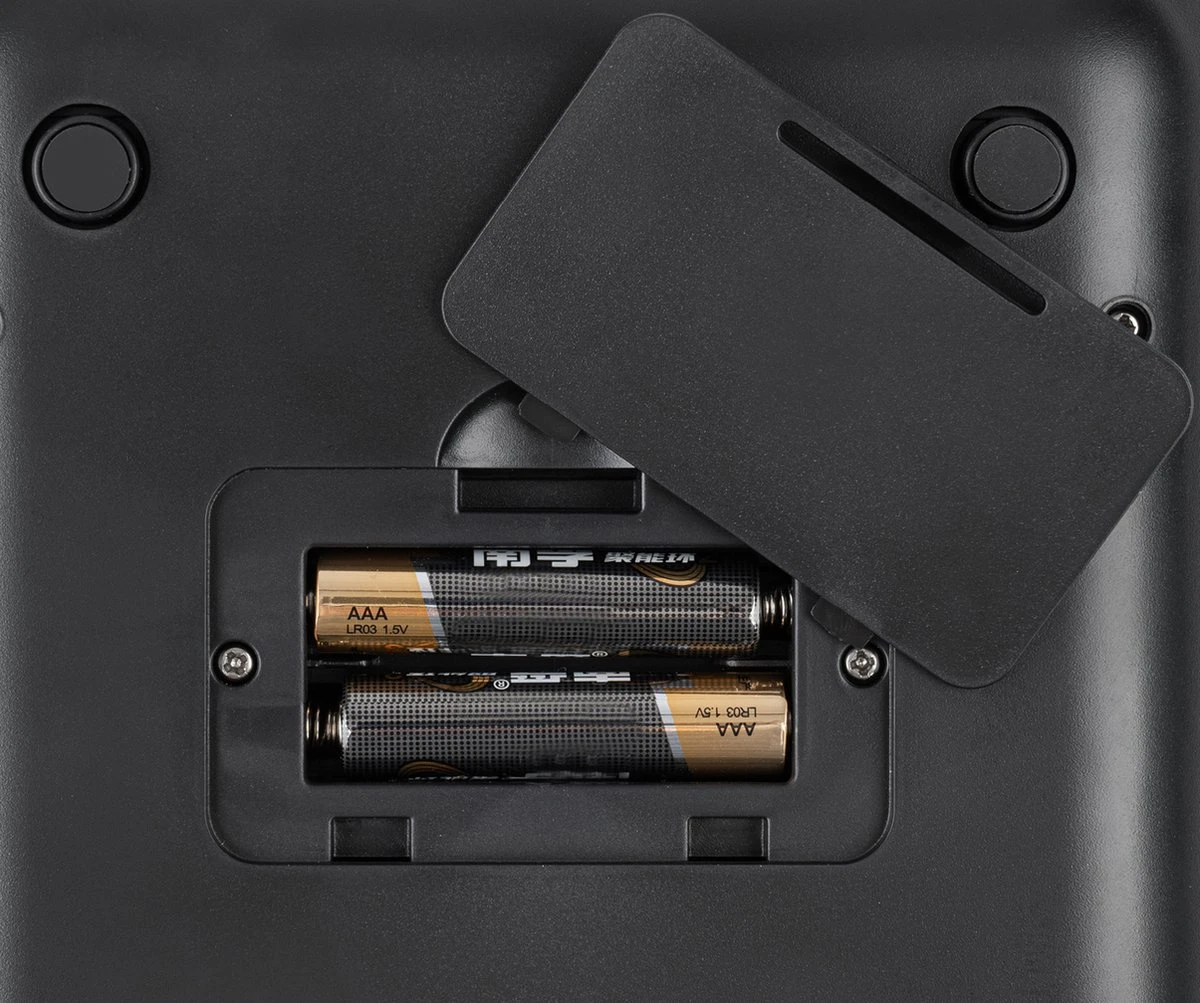 Wanneer je de keukenweegschaal vergeet uit te schakelen is dit geen probleem. Om de batterijen te sparen zal de keukenweegschaal zichzelf na ca. 2 minuten automatisch uitschakelen. Door de on/tare toets ca. 2 seconden vast te houden, kun je de keukenweegschaal handmatig uitzetten.